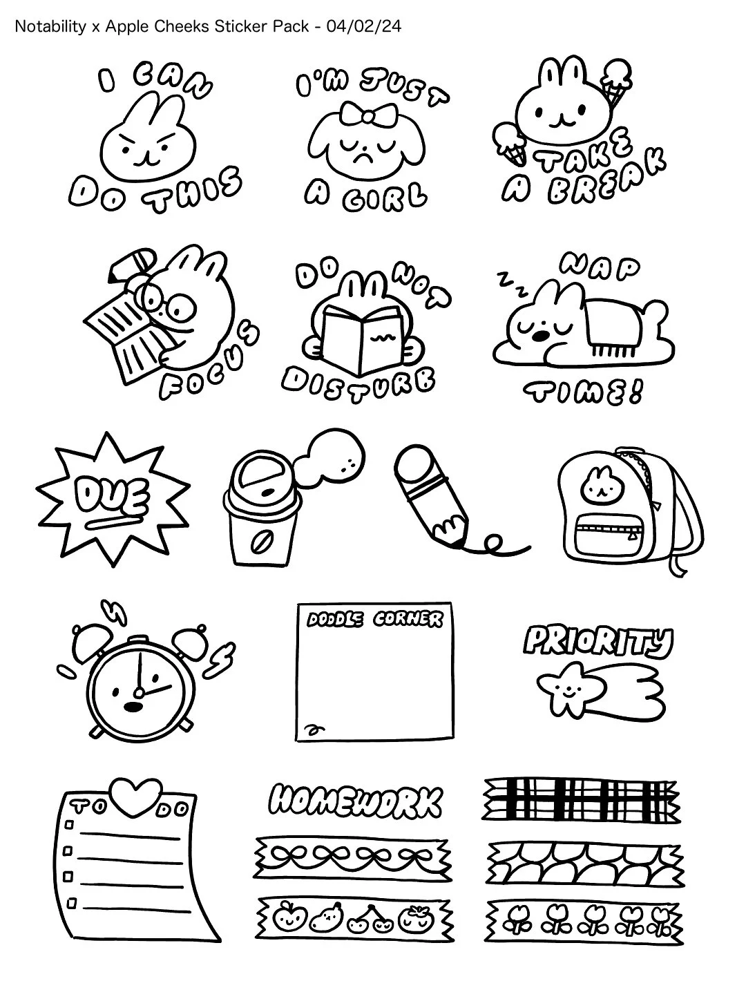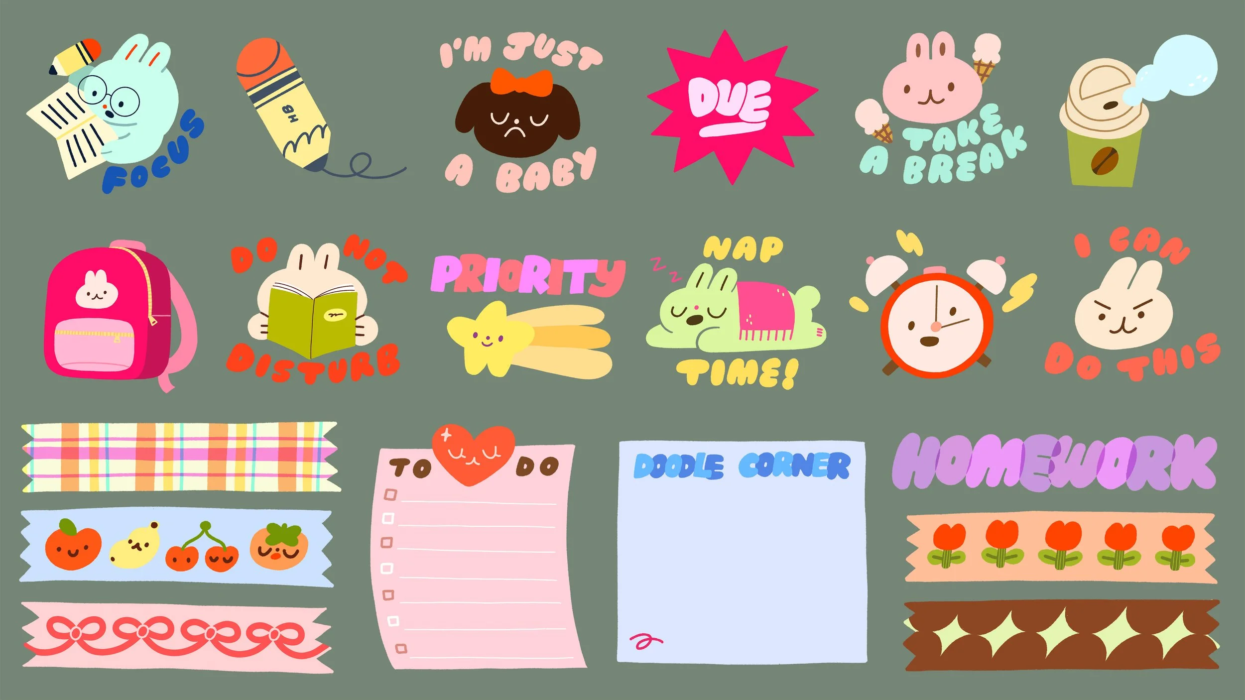Notability reached out for a second set of digital stickers. For this set we wanted to focus on the theme of back to school. Alongside motivational designs, I also wanted a few interactive ones. I made washi tape designs and post it note stickers that can be written on.